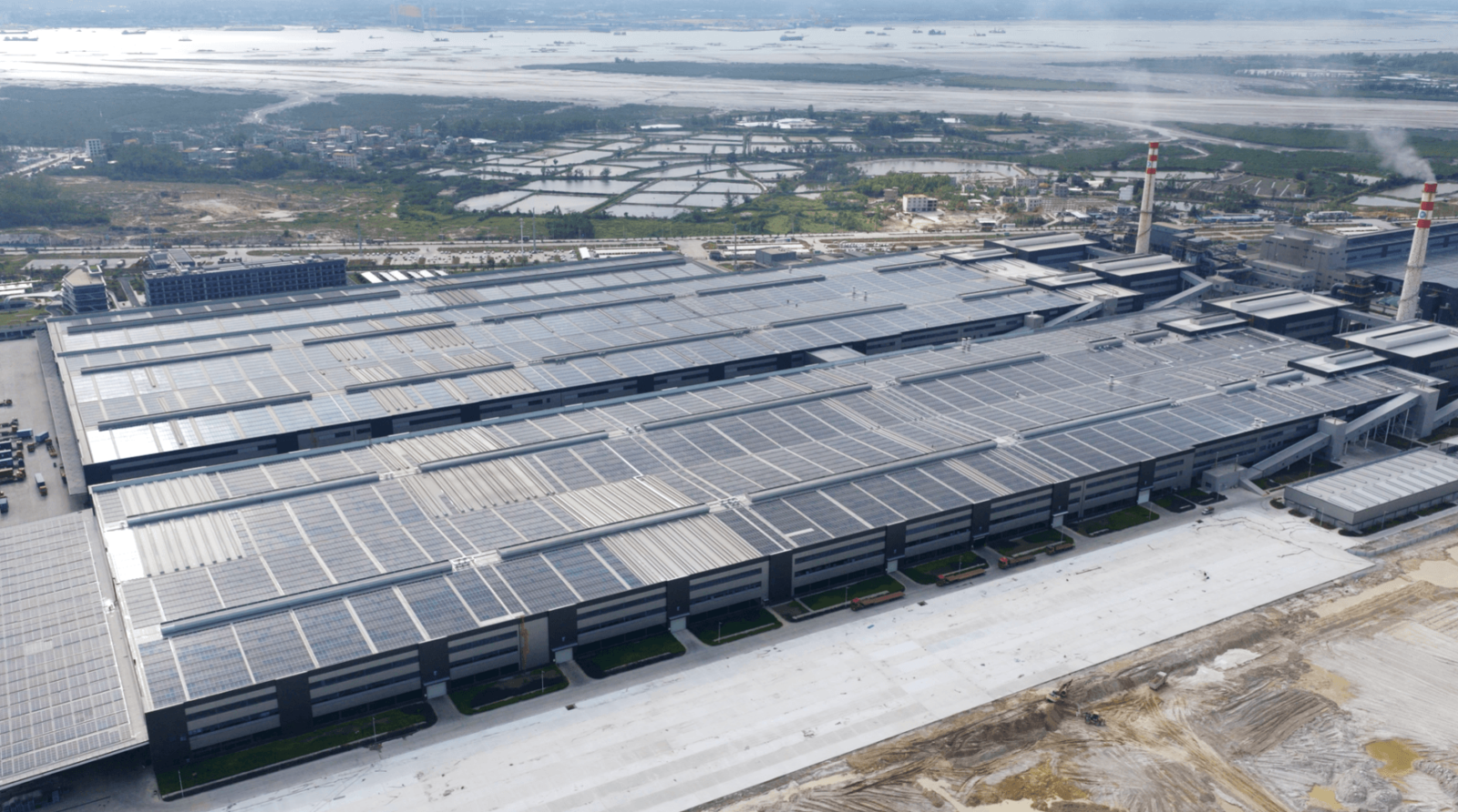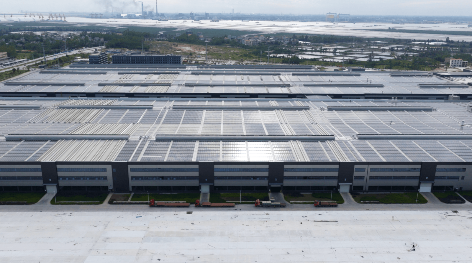 •Project Requirements: The system was deployed on metal sheet rooftops across the industrial park. The core requirement was a customized mounting solution capable of handling high coastal wind loads, enabling non-penetrative installation to protect the roof, and ensuring efficient construction with minimal disruption to ongoing operations. Specifically, the solution needed to: (1) Meet a 0.75 kN/m² wind load requirement to ensure structural safety under extreme weather conditions; (2) Adopt a non-penetrative installation method to maintain roof waterproof integrity; (3) Enable fast, low-interference installation during normal plant operations while controlling construction costs.